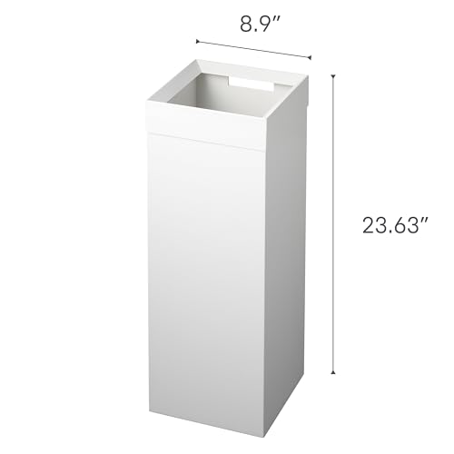 Yamazaki Home Tower Tall Trash Can - Modern Garbage Waste Basket With Handle For Kitchen Bathroom Office - Steel - 7.25 Gallons, 27 Liters