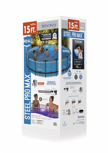 Bestway Steel Pro MAX Above Ground Swimming Pool (15' x 42") | Round Outdoor Backyard Family Pool with Color-Changing Pool Liner | Features 7-Color LED Lights