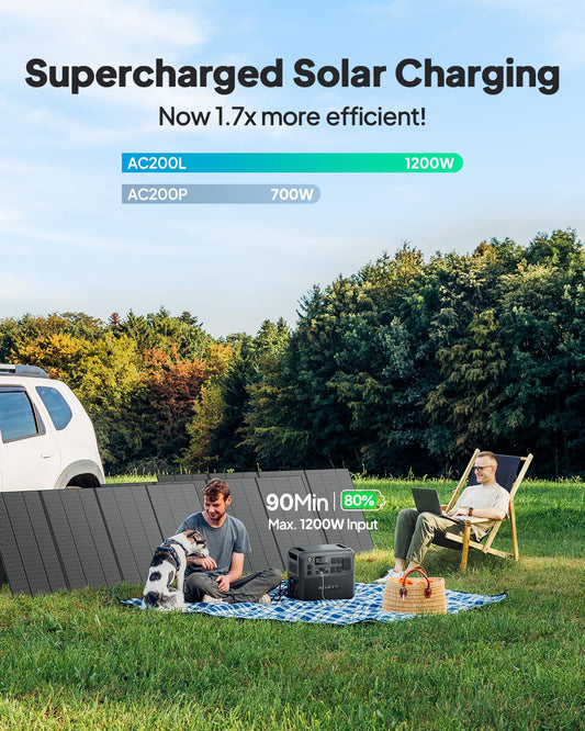 BLUETTI Solar Generator AC200L & Charger 1 (Ships Separately), 2048Wh LFP Backup, 560W DC-DC Alternator Charger, 3.6H Full Charge via Car, Perfect for Road Trips, RVs, Power Outages
