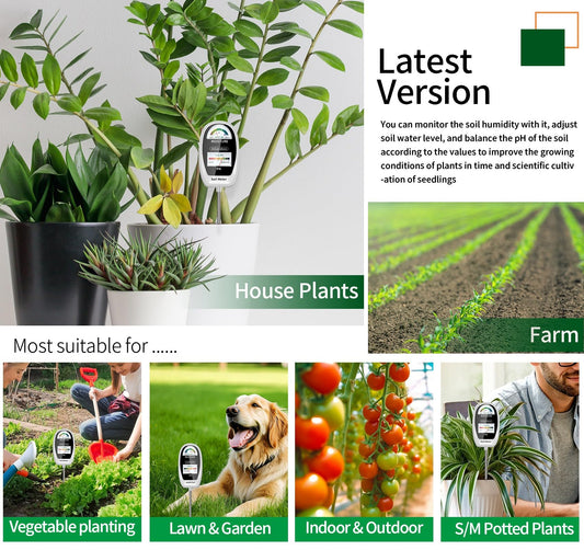 AiGerdinn Soil Test Kit, 2-in-1 Soil Moisture Meter, Soil pH Meter -Dual Dial-Simultaneously-Display Results-Soil pH Tester, Moisture Meter for Garden,Lawn,Farm Indoor&Outdoor Plants-PureWhite
