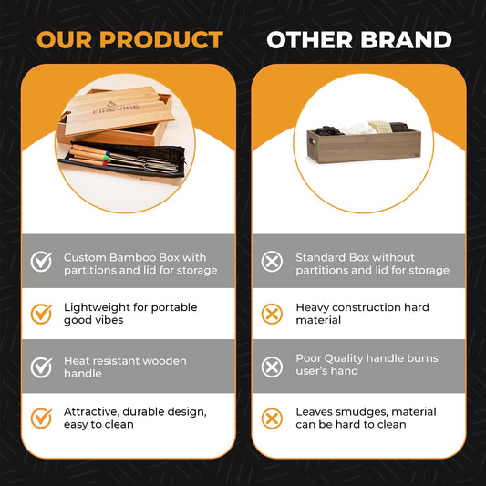 Smores Kit | Custom Bamboo Box with 6 Piece Smores Sticks for Fire Pit Outdoor | Attractive Portable Smores Kit for Fire Pit Outdoor or Indoor Smores Kits | Smore Kit with Smore Sticks