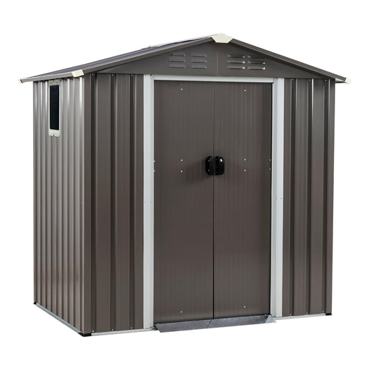 Shintenchi 6x4 FT Outdoor Storage Shed with Window, Lockable Outdoor Waterproof Tool Storage Sheds, Weather Resistant Tool Storage House Shed for Garden, Backyard, Patio Utility and Tool Storage, Gray