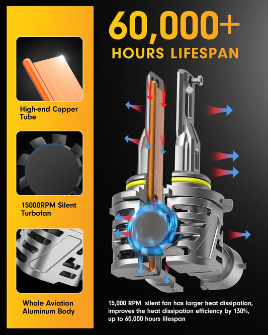 Ursprung 9005/HB3 Bulb, 22000 Lumens 700% High Brightness Plug-N-Play, Direct Installation Fog Light Bulbs, 1:1 Halogen Replacement Cooling Fan, Pack of 2