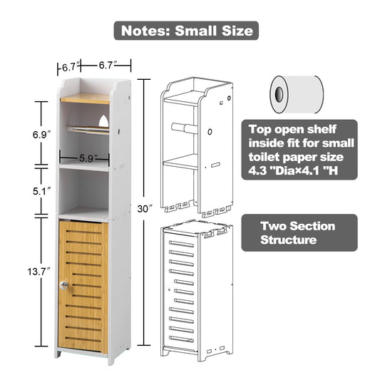 AOJEZOR Toilet Paper Holder Stand: Small Bathroom Storage Cabinet - Pure White/Bamboo