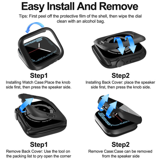 YIJDACASE 3 in 1 Waterproof Case for Apple Watch Screen Protector 44mm Series 4 5 6 SE 2nd Gen Accessories with Tempered Glass Film,Front and Back PC Bumper 360° Protective Face Cover for iWatch 44mm