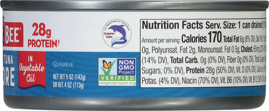 Bumble Bee Solid White Albacore Tuna in Oil, 5 oz Can (Pack of 24) - Wild Caught Tuna - 28g Protein per Serving, High in Omega-3s - Non-GMO Project Verified, Gluten Free, Kosher