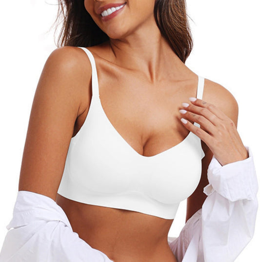 OEAK Womens Seamless Bra Push Up V Neck Bralettes Adjustable Wireless Padded Comfort Bras Adjustable Basic Everyday Bras White L