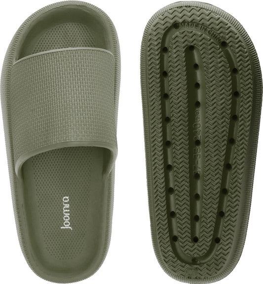 Joomra Mens Shower Pillow Slippers Slides Cushion for Womens Foam House Antislip Slipers Pool Beach Spa Home Garden Sandals for Ladies Male Sandles Army Green 42-43