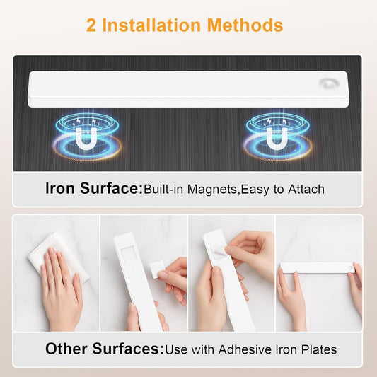 Auxoda 13 Inch Wireless Motion Sensor Light Indoor, USB Rechargeable Battery Operated Step Light, Magnetic Stick On Lights for Stair, Step Lights Motion-Activated Auto Shut-Off (2-Pack)