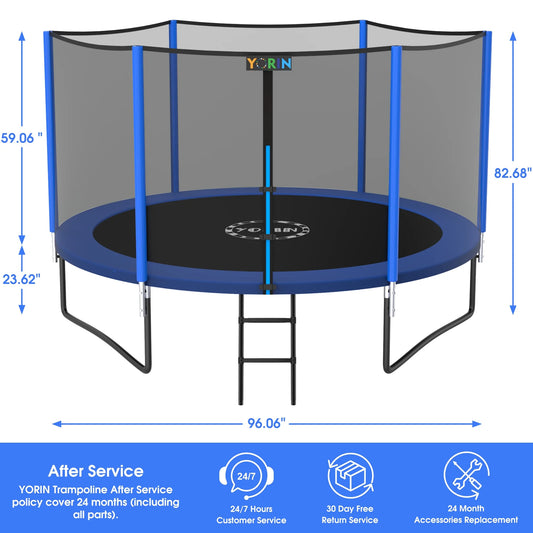 YORIN Trampoline for 2-3 Kids, 8 FT Trampoline for Adults with Enclosure Net, Ladder, Light, 800LBS Weight Capacity Outdoor Round Recreational Trampoline, Heavy Duty Trampoline