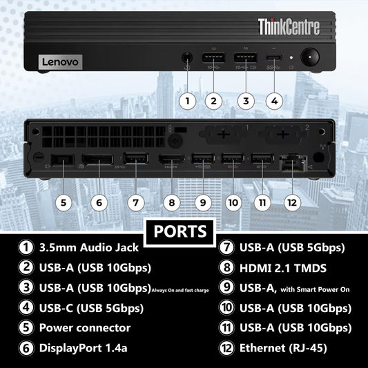 Lenovo ThinkCentre Tiny M70q Gen 5 Intel 10-Core i5-14400T (Beat i7-13700T), 16GB DDR5 RAM, 512GB NVMe, WiFi 6, Bluetooth, RJ-45, DP Port, HDMI, W11P, Business Desktop, 3 Yr Wty