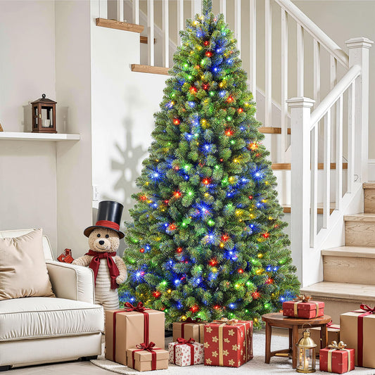 SHareconn 7ft Prelit Premium Artificial Classic Spruce Christmas Tree with Remote Control,Timer, 400 Warm White & Color LED Changing Lights, 1062 Branch Tips, Perfect Choice for Xmas Decoration, 7 FT