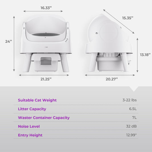 PetPivot Self-Cleaning Cat Litter Box for Multiple Cats - Automatic, Open Top, White with Liners and Mat Included
