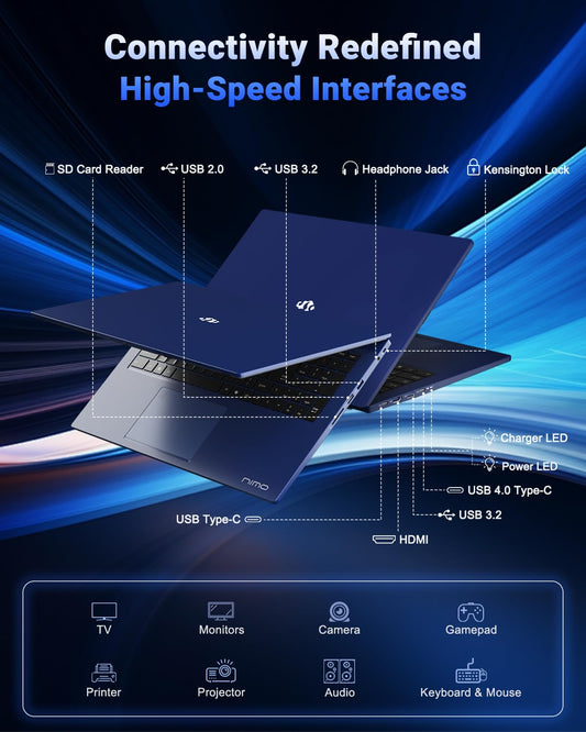 NIMO 17.3" IPS FHD-Gaming-Laptop, AMD Ryzen 7 8745HS 32GB DDR5 RAM 1TB SSD (8C/16T, up to 4.9GHz) Radeon 780M Graphics Business Computer with 100W Type-C Backlit Keyboard, Fingerprint USB-C 4.0