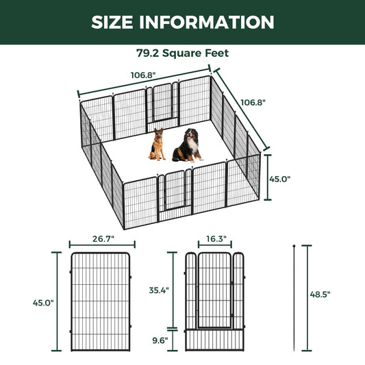 FXW Rollick Unleashed Dog Playpen for Indoor, Yard, RV Camping, 45 inch 16 Panels for Large Dogs│Patented