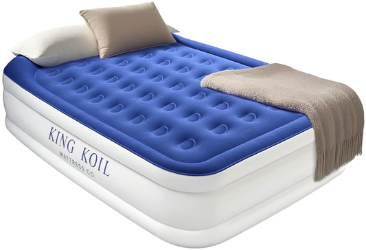 King Koil Luxury Queen Air Mattress with Built-in Pillow & Ultra-Fast Built-in High-Speed Pump, 20″ Inflatable Premium Airbed, Waterproof, Adjustable Firmness, 1-Year Manufacturer Warranty