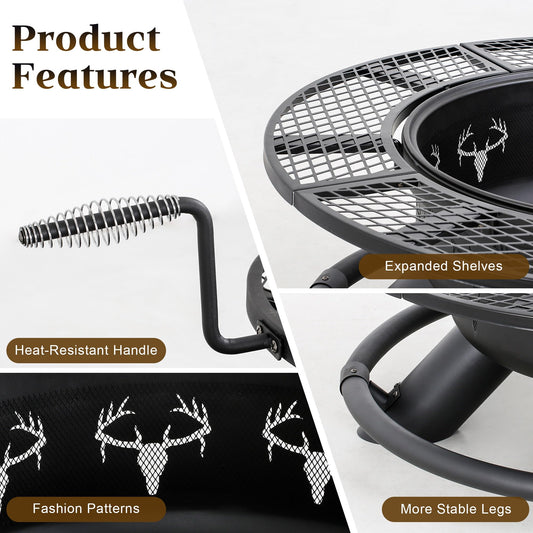 BALI OUTDOORS Fire Pit with Poker, Outdoor Fire Pit Extra Large, Wood Burning Firepits for Outside with Grill, 47 inch