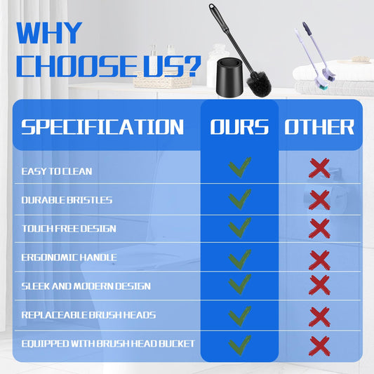 Toilet Brush and Holder 2 Pack with Long Handle - Non-Slip Grip Toilet Bowl Brush Set for Deep Cleaning Bathroom, Toilet Scrubber- Black