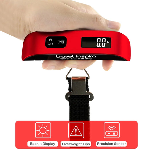 Luggage Scale Travel Inspira Digital Hanging Bag Weight Handheld Scale with Temperature Function Red 110LB