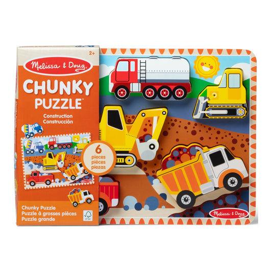 Melissa & Doug Construction Vehicles Wooden Chunky Puzzle (6 pcs) - FSC Certified