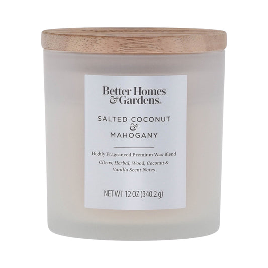 Better Homes & Gardens Salted Coconut Mahogany Scented 2-Wick Frosted 12oz Candle