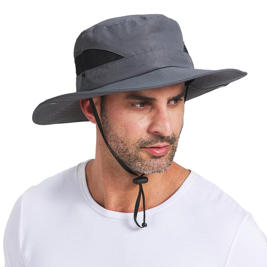 PFFY Sun Bucket Hats for Men Women 3” Wide Brim UPF 50+ Fishing & Beach Hat Darkgrey