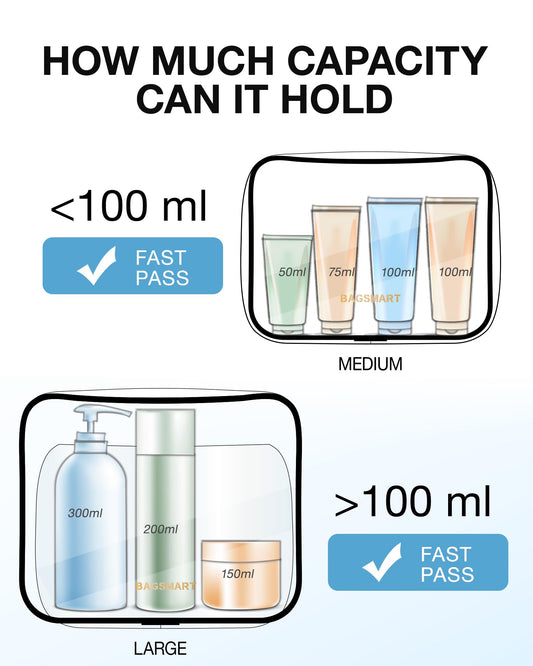BAGSMART Clear Toiletry Bag, 2 Packs TSA Approved Water Resistant Quart Size Travel Organizer, 2 Sizes Airport Airline Travel Essential Carry On Makeup Cosmetic Bags for Women, Black