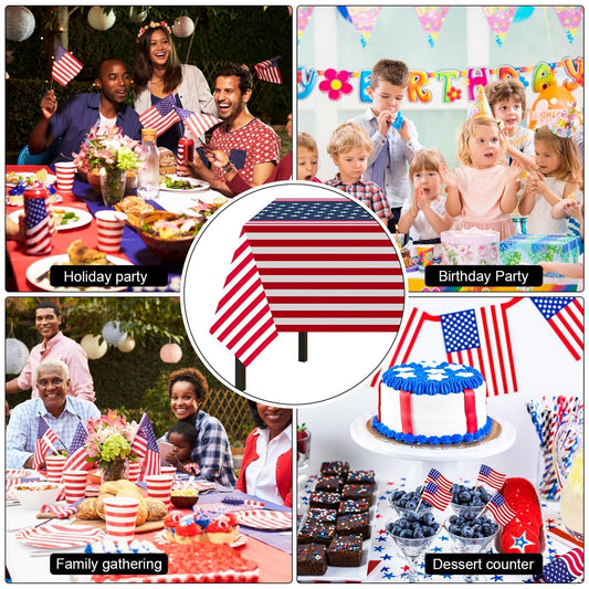 Childom 4th of July Decorations,2 Pack Patriotic Tablecloth,Patriotic Decorations 54" x 108" Disposable American Flag Tablecloth,Plastic Table Cloth for Fourth of July Camping Memorial Party Supplies