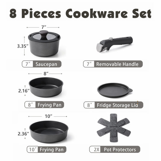 SENSARTE Nonstick Pots and Pans Set with Detachable Handle, 8pcs Cookware Sets with Removable Handle (Black)