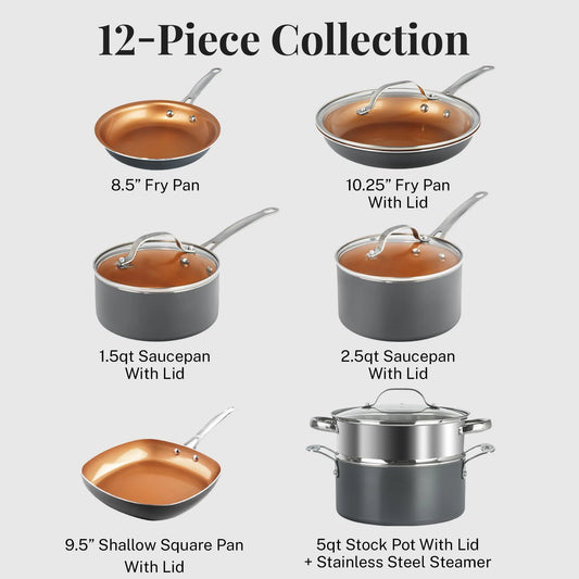 Gotham Steel Nonstick Pots and Pans 12 Piece Set Ceramic Cookware Kitchen Set with Frying Skillet, Saucepan, Lids, Gray