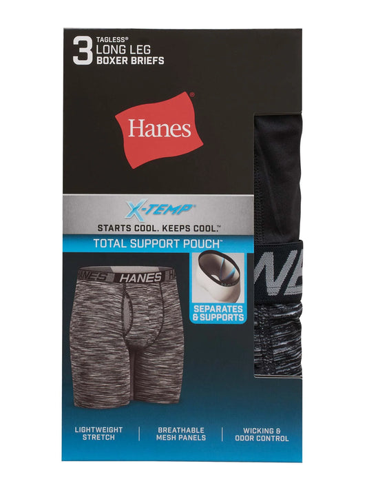 Hanes X-Temp Total Support Pouch Men's Long Leg Boxer Briefs, Anti-Chafing Underwear, 3-Pack