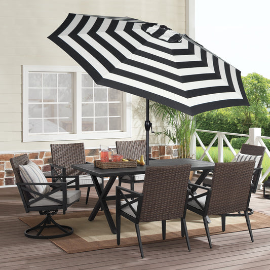 Mainstays 9ft B & W Cabana Stripe Round Outdoor Tilting Market Patio Umbrella with Crank