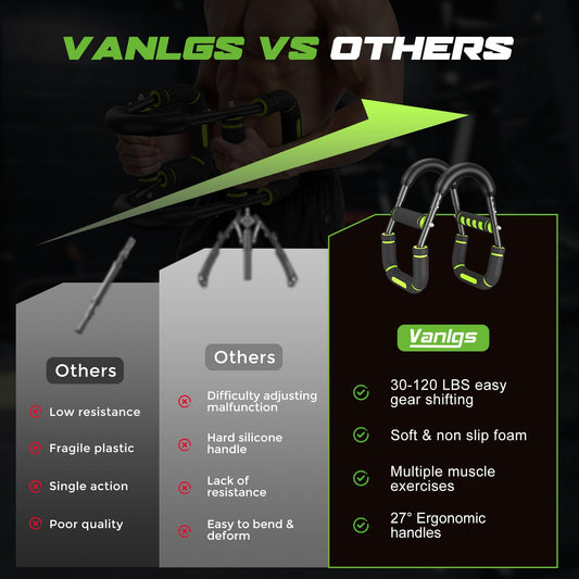 Vanlgs Twister Arm Trainer for Men, Chest Workout Equipment 5-Level Adjustable (40-130lb) with Ergonomic 27° Targets Biceps/Clip/Thigh, Portable Exerciser for Home Gym Travel Fitness, Green