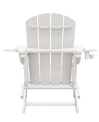SERWALL Adirondack Chair with Cup Holders - Composite Adirondack Chairs HDPE Outdoor Chairs All Weather Use- White