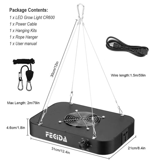 FECiDA LED Grow Light Dimmable 6000 Lumen 65 Watt, 2025 Best Grow Lights for Indoor Plants Full Spectrum, Hanging Seed Starting Seedlings Vegetable Growing Lamps, Daisy Chain Function, Built-in Fan