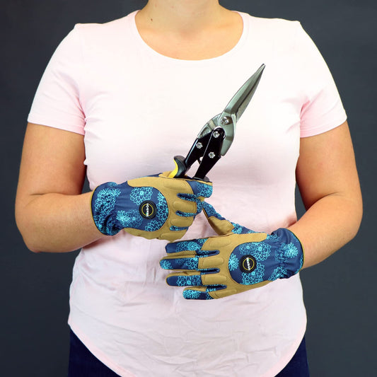 Miracle Gro Women's High-Dexterity Gardening Work Gloves, Touchscreen Technologies, Abrasion Resistant, Comfort, Blue/Tan, Medium, (MG86207/WML)