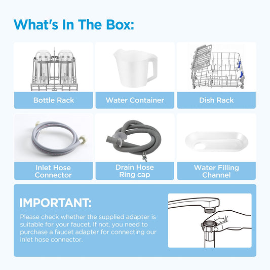 Midea MDC17P4CWW Portable Countertop Mini 5L Built-in Water Tank, Baby Care, No Hookup Needed, 360° Dual Spray,High-Temp wash, Dishwasher for Apartments& RVs, White, Whole