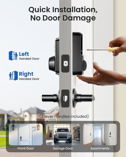 Veise Keyless Entry Door Lock with 2 Lever Handles - Electronic Keypad Deadbolt, Easy Installation Digital Smart Front Door Lock Set, Matte Black