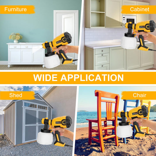 Paint Sprayer, 700W HVLP High Power Electric Spray Paint Gun with 40 Fl Oz Container, Adjustable Spray Width, 4 Nozzles & 3 Patterns, Easy to Clean, for Furniture, House, Fence, Walls, Etc.