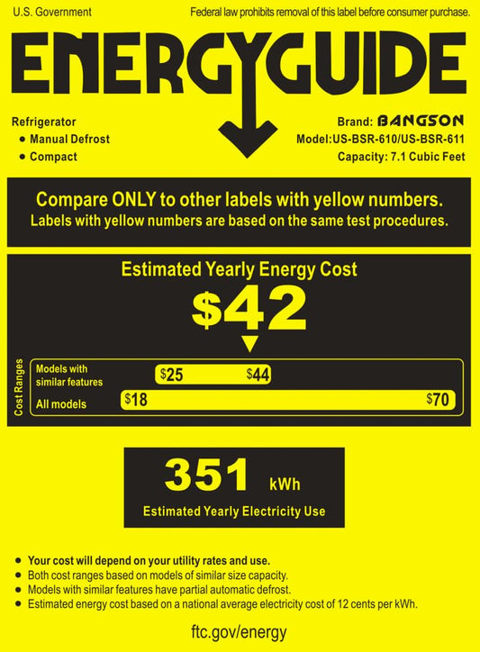 BANGSON 7.1 Cu.Ft Refrigerator with Freezer, Apartment Size Fridge with Bottom Freezer, Large Capacity, Energy Saving, Adjustable Thermostat, Low Noise, Black