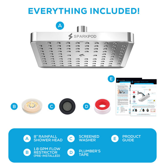 SparkPod Shower Head - High Pressure Rain - Premium Quality Luxury Design - 1-Min Install - Easy Clean Adjustable Replacement for Your Bathroom Shower Heads (Luxury Polished Chrome, 8 Inch Square)