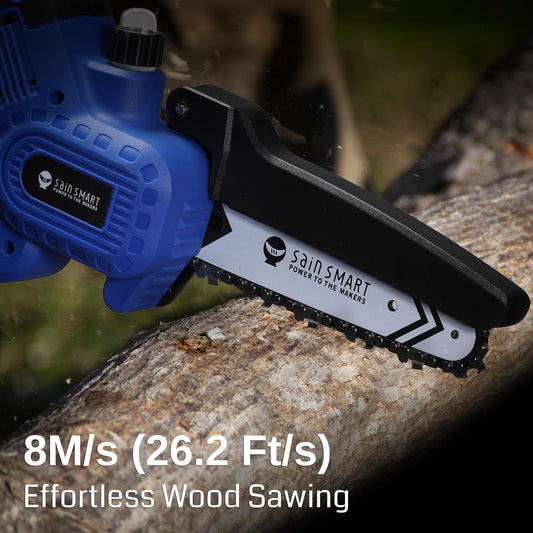 SainSmart Mini Chainsaw 6 Inch Cordless Portable Electric Chainsaw, Handheld Powered Super Saw with 2PCS 3000mAh Batteries, Goggles & Gloves, for Tree Trimming Branch Pruning Woodcutting