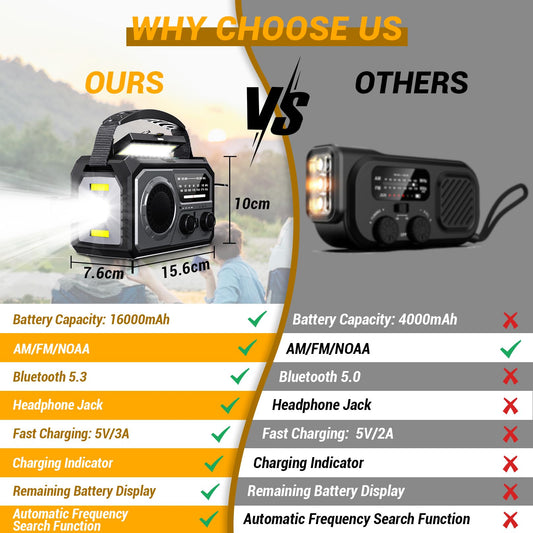 Emergency Radio Solar Crank Battery - 16000mAh/59200mWh Portable Survival Weather Radio AM FM NOAA Powered Phone Charger with LED Flashlight, Reading Lamp, SOS Alarm, Headphone Jack, Grey