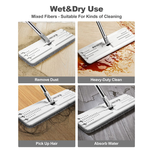 JOYMOOP Mop and Bucket with Wringer Set, Hands Free Flat Floor Mop and Bucket, with 3 Washable Microfiber Pads, Wet and Dry Use, Floor Cleaning System