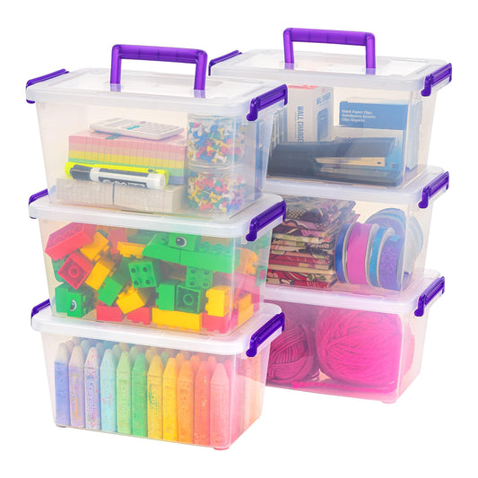IRIS USA 5 Qt. Plastic Storage Bins with Lids, 6 Pack, Craft Storage Container, Sensory Bin, Organizing Containers for Home, Office & Art Supplies, Stackable, Clear