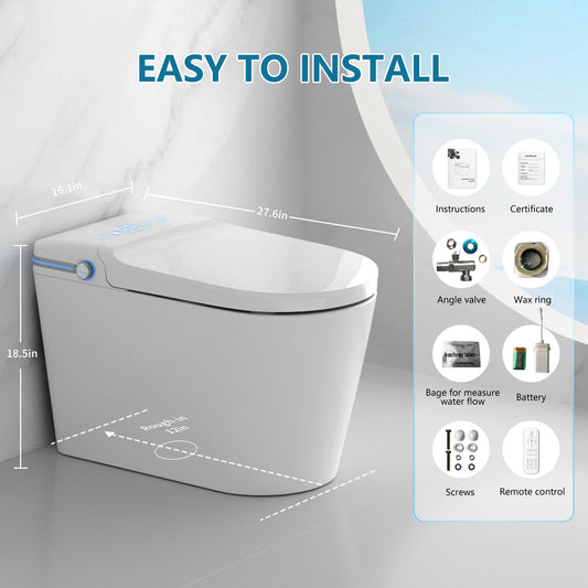 LOUPUSUO Luxury Smart Toilet with Bidet Built In, Bidet with Heated Seat,Warm Water Sprayer & Dryer, Japanese Toilet with Foot Sensor Operation,LED Display
