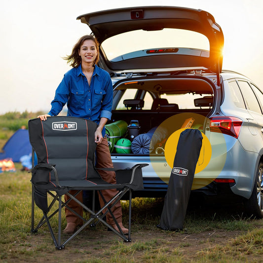 Overmont Oversized Folding Camping Chair - 450lbs Support with Padded Cushion Cooler Pockets - Heavy Duty Collapsible Chairs for Sports Garden Beach Fishing