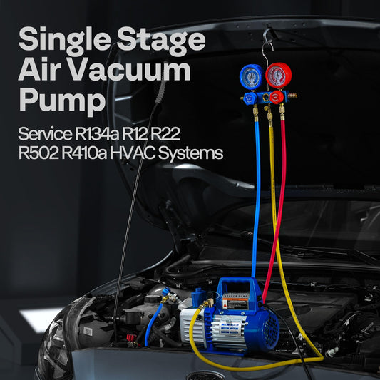 VIVOHOME 110V 1/3 HP 4CFM Single Stage Rotary Vane Air Vacuum Pump and R134a AC Manifold Gauge Set Kit with Leak Detector Carry Bag for HVAC Air Conditioning Refrigeration Recharging ETL Listed