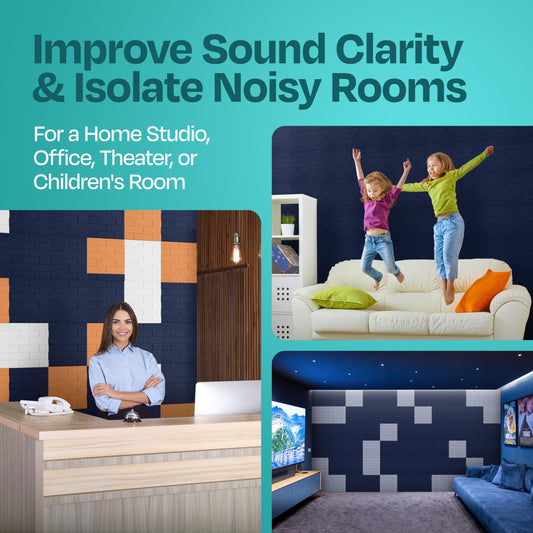 Ekkogo Acoustic Panels 18-Pack Soundproof Wall Panels 12"X12"X0.4" Brick Style Sound Panels Premium Sound Dampening Panels Easy Self Adhesive Installation - [Denim Blue]