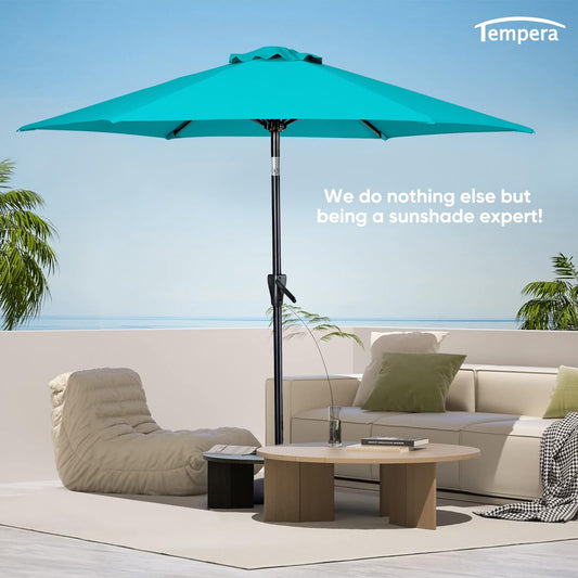 Tempera 9ft Patio Market Outdoor Table Umbrella with Push Button Tilt and Crank,Large Sun Umbrella with Sturdy Pole&Fade resistant canopy,Easy to set, Turquoise